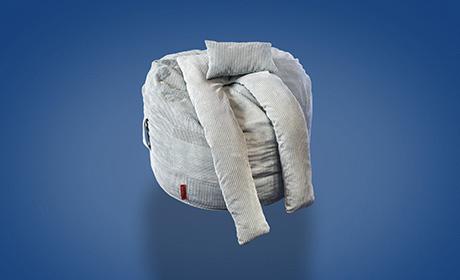 Aus Kaltschaumflocken werden bequeme Sitzsäcke, Kissen oder Fußsäcke.